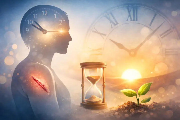 In this study we wounded study participants following a standardized procedure and manipulated perceived time to test whether perceived time affected the rate of healing. We measured the amount of healing that occurred across three conditions using a within-subjects design - Slow Time (half as fast as clock time), Normal Time (clock time), and Fast Time (twice as fast as clock time). Based on the theory of mind-body unity – which posits simultaneous and bidirectional influences of mind on body and body on mind – we hypothesized that wounds would heal faster or slower when perceived time was manipulated to be experienced as longer or shorter respectively. Although the actual elapsed time was 28 minutes in all three conditions, significantly more healing was observed in the Normal Time condition compared to the Slow Time condition, in the Fast Time condition compared to the Normal Time condition, and in the Fast Time condition compared to the Slow Time condition. These results support the hypothesis that the effect of time on physical healing is directly affected by one’s psychological experience of time, independent of the actual elapsed time.